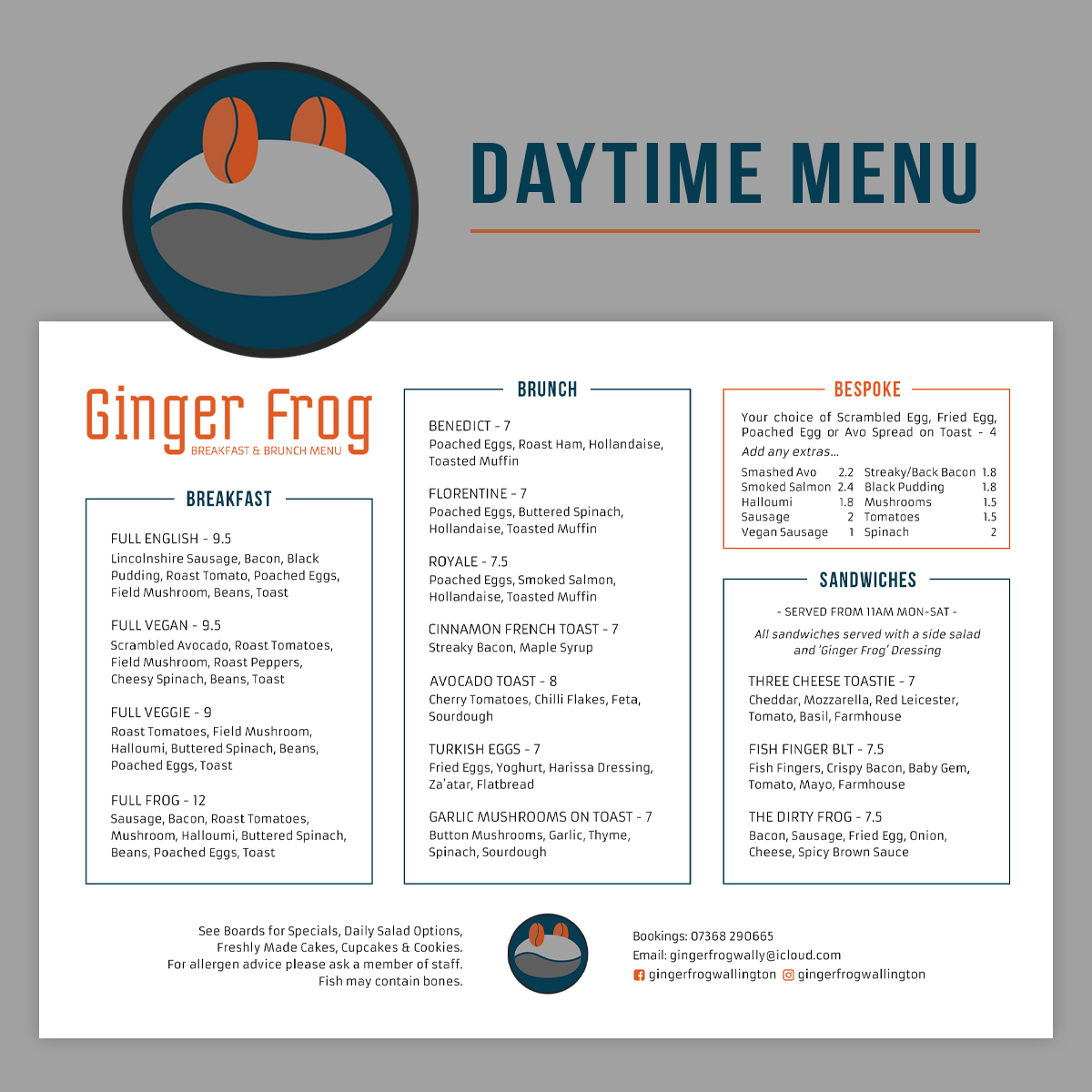 Welcome to Ginger Frog, a culinary gem located at 51 Woodcote Rd, Wallington. This vibrant eatery specializes in fresh, homemade dishes that resonate with both heart and taste. The breakfast menu boasts delightful options like the Full English and creative spins such as the Avocado Toast and Turkish Eggs, catering impressively to all dietary preferences, including vegan and vegetarian.